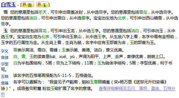 名字的五行、生肖、五格等傳統(tǒng)信息