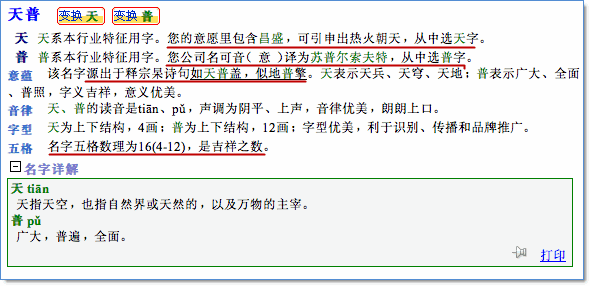 2、根據(jù)輸入的英文名和所在領(lǐng)域,美名騰給出最接近領(lǐng)域特色的音譯、意譯名,如下圖所示