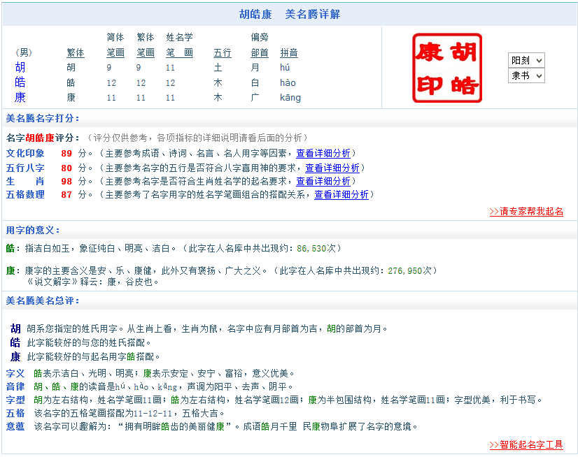 更多姓名實用工具和精彩測試:寶寶起名 專家起名 公司起名 起名大全 好聽的英文名 生辰八字 號碼吉兇測試 姓名配對 免費算命