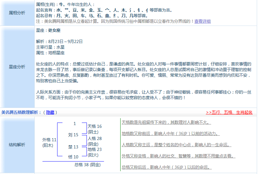劉楚恬,2009年9月5日出生于福建泉州,“楚恬”楚楚動(dòng)人,心曠神恬。下面我們從姓名學(xué)的角度簡(jiǎn)單分析一下劉楚恬的名字,由于只知道劉楚恬出生的年月日,具體時(shí)辰不知道,故八字分析部分僅供參考。